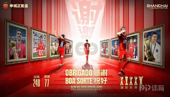 上海海港官方更新微博,為奧斯卡送上祝福。
