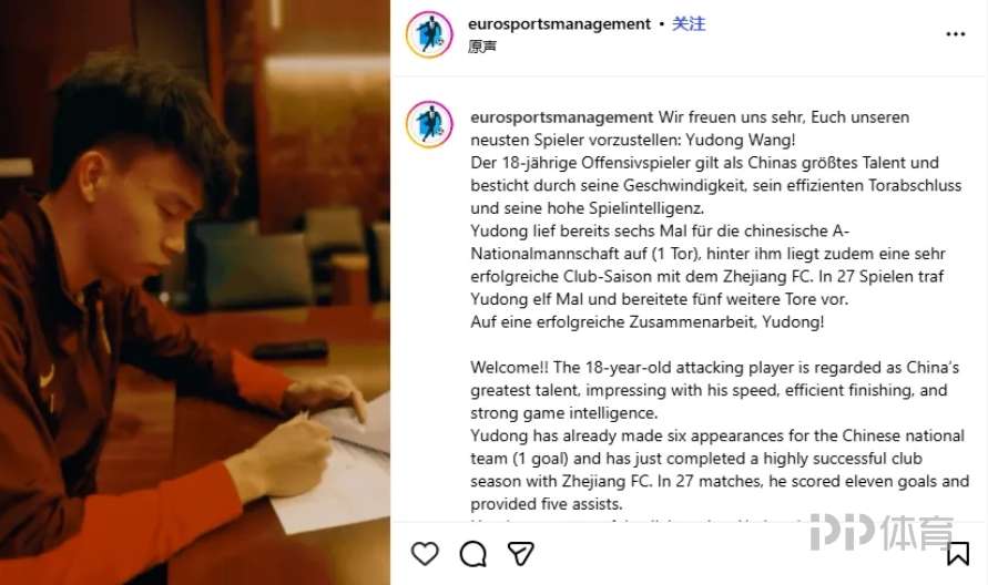 歐洲經(jīng)紀(jì)公司Euro Sports Management社媒發(fā)布視頻,宣布正式簽約王鈺棟。